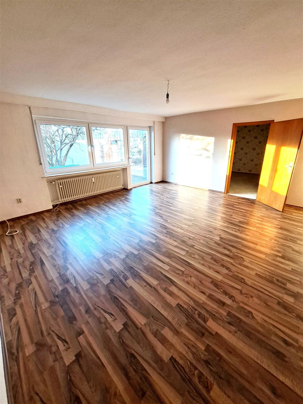Mit Wohnzimmer, Schlafzimmer, Küche , Flur und einem Wannenbad, hat die Wohnung eine begehrte Größe für eventuelle Vermietung. Angrenzend an die Wohnung befindet sich noch ein Kaltwintergarten.