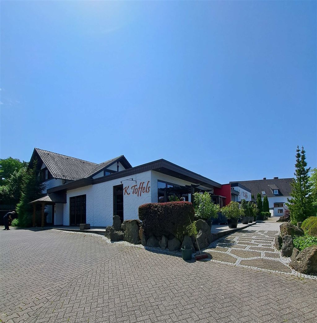 Außenbereich: Charmanter Biergarten im vorderen Bereich des Grundstücks, ideal für Gäste und Veranstaltungen